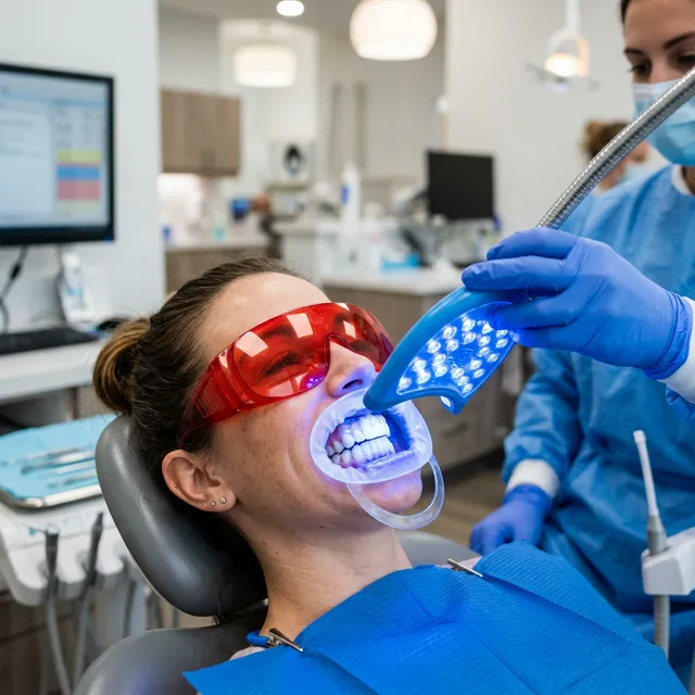 Daha parlak ve bembeyaz bir gülüş için profesyonel beyazlatma seansları.